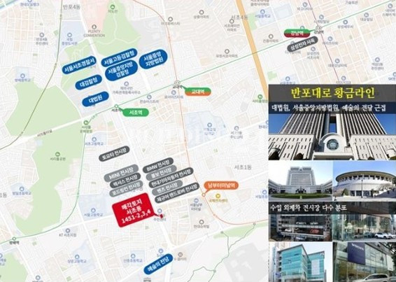대법원, 서울중앙지방법원, 예술의전당 근접 대로변 접 신축부지