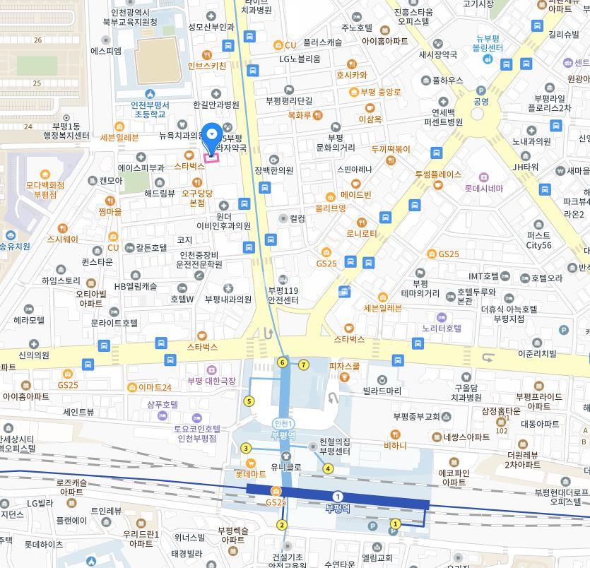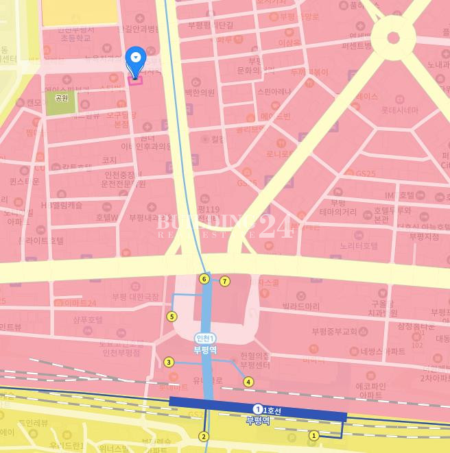 부평역 도보 4분 부평대로와 부평문화로 대로변 교차로 주변 빌딩