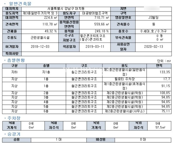 지상 6층/ 지하 1층, 제3종일반주거지역