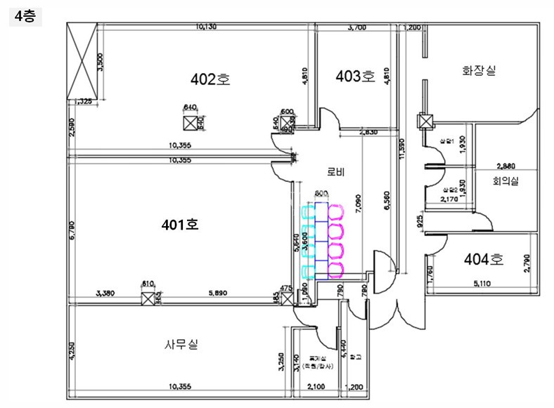 인포로비, 룸 8개(대형5개, 소형3개, 사무실,상담실 2개, 회의실 2개