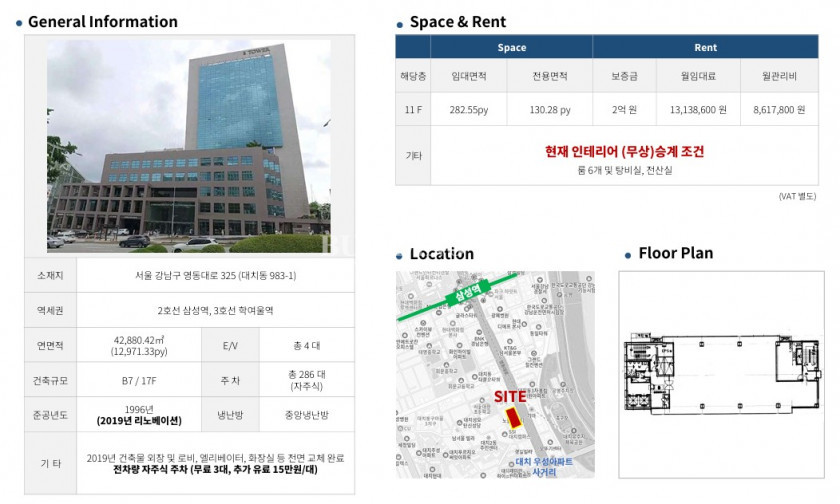 보증금 2억 월 13,180,000원 관리비 8,617,800원